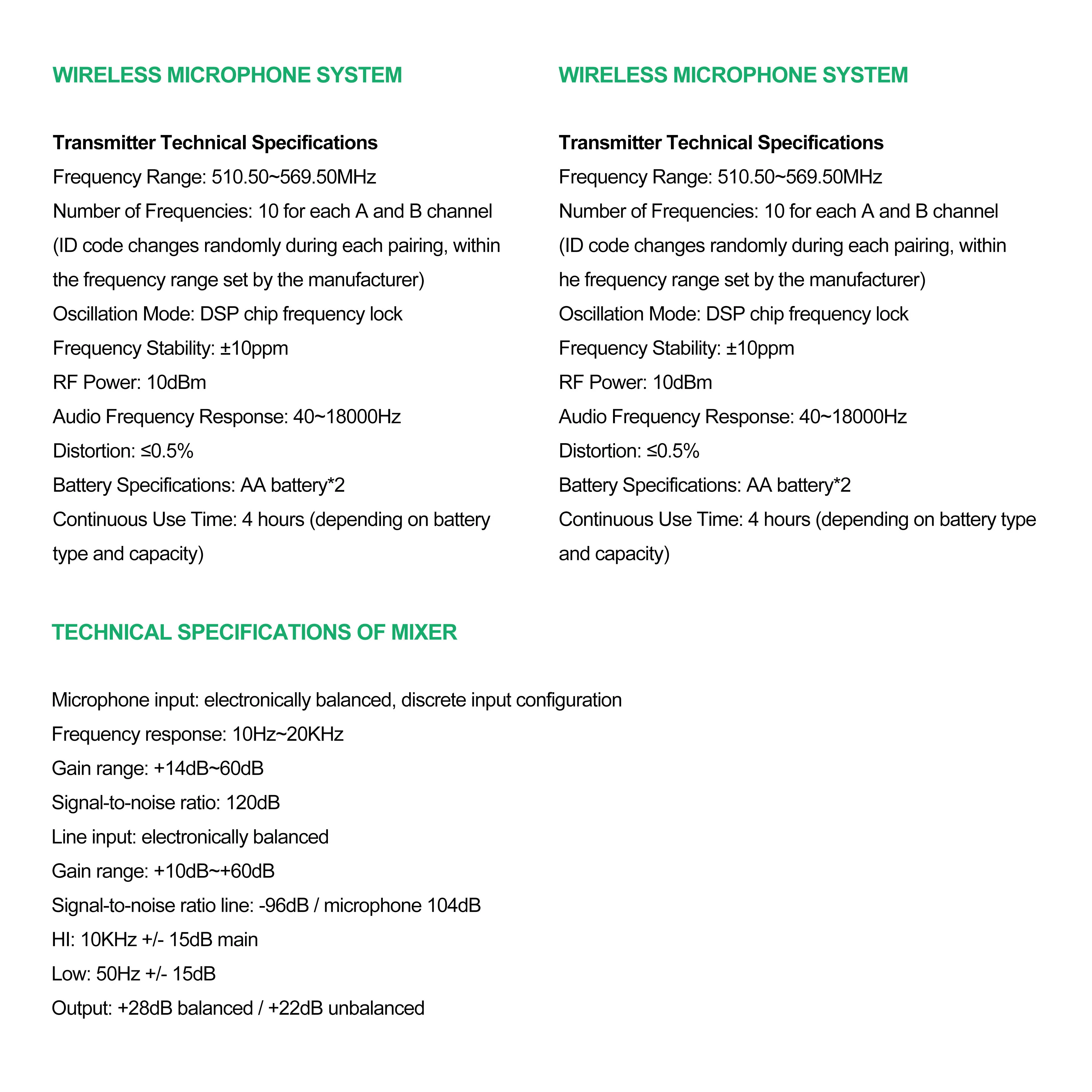 Number of Frequencies: 10 for each A and B channel (ID code changes randomly during each pairing, within the frequency range set by the manufacturer)