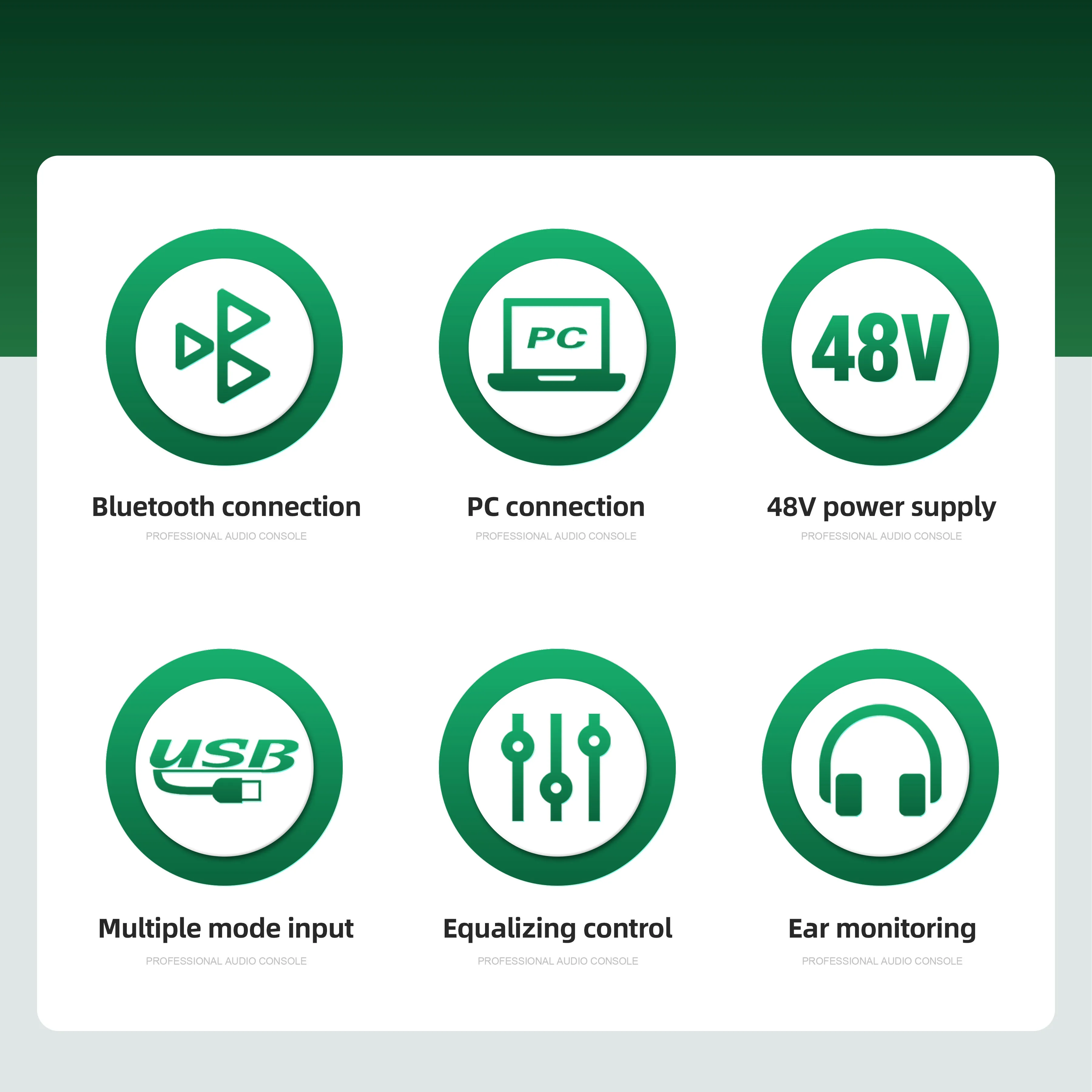 Debra DJ Console UHF Audio Mixer with SoundCard Wireless Mic 5V Bluetooth 5.0 for Karaoke, Live Performance