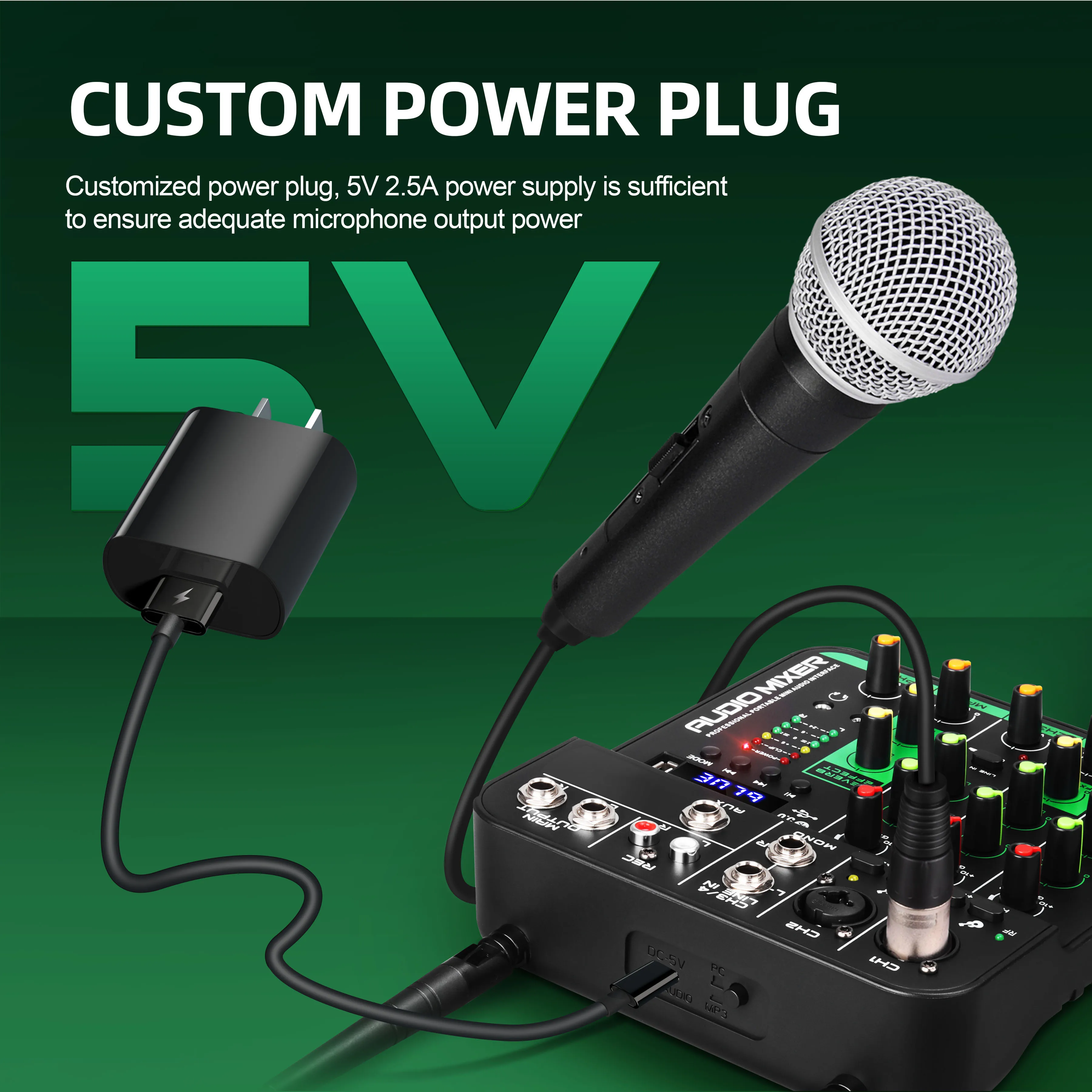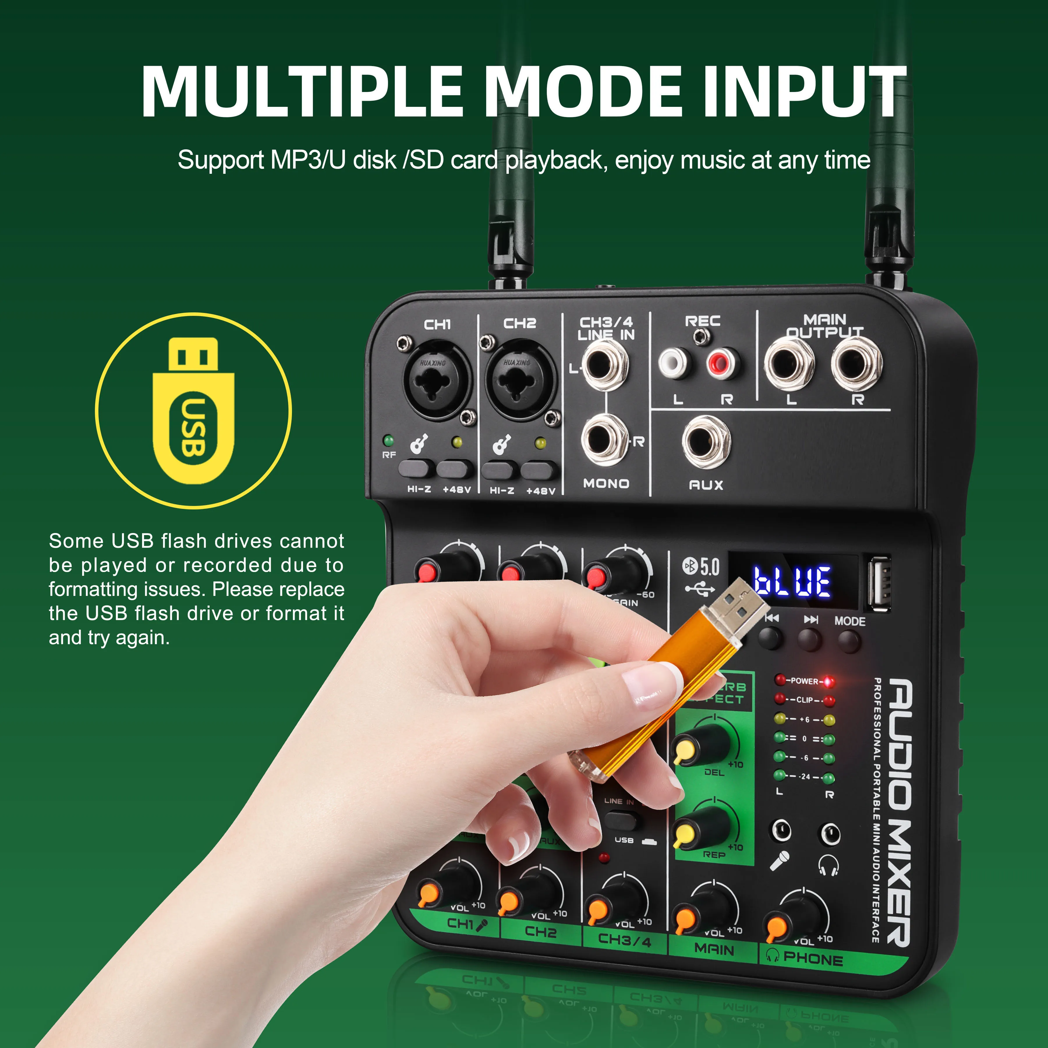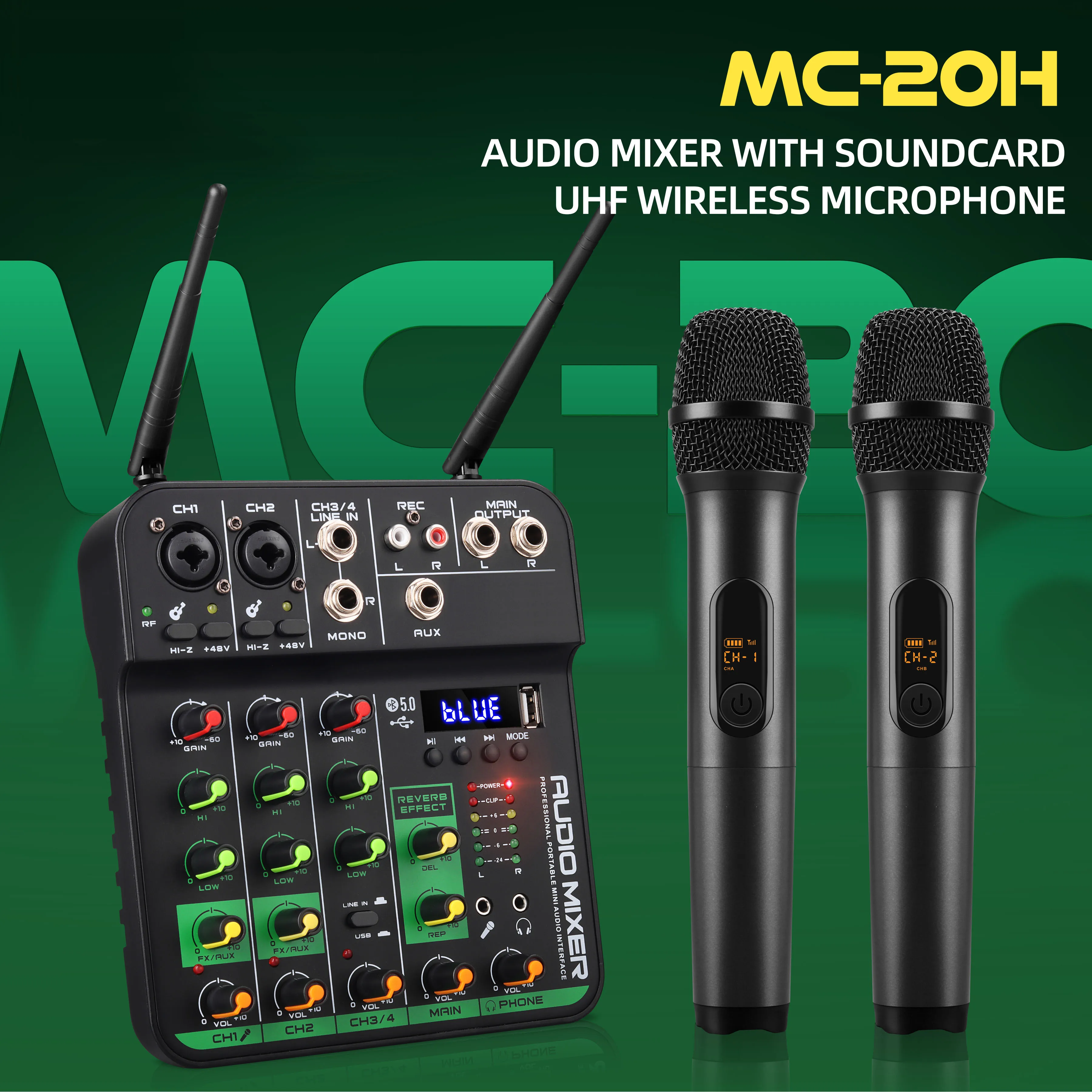 New Product Professional Portable Mini 4 Channel Karaoke Audio Mixer MC-20H with 2 UHF Wireless Microphone DJ Audio Console