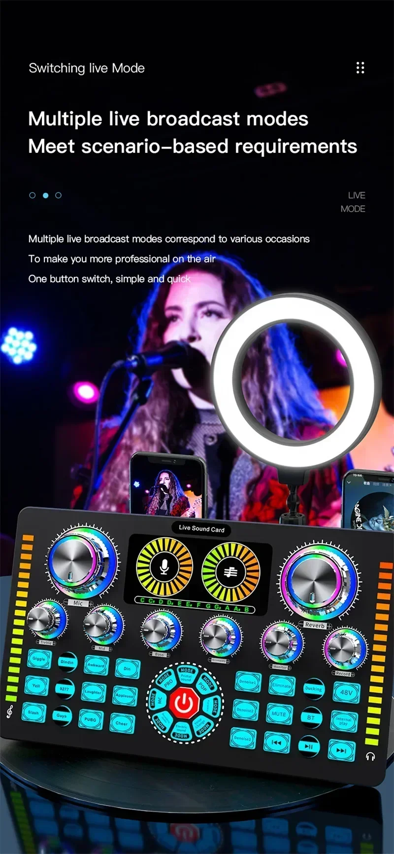 Q7 Live Sound Card Sound Mixer Podcast Karaoke Home Studio Record Professional Soundcard Bluetooth Microphone Mixers Voice Chang