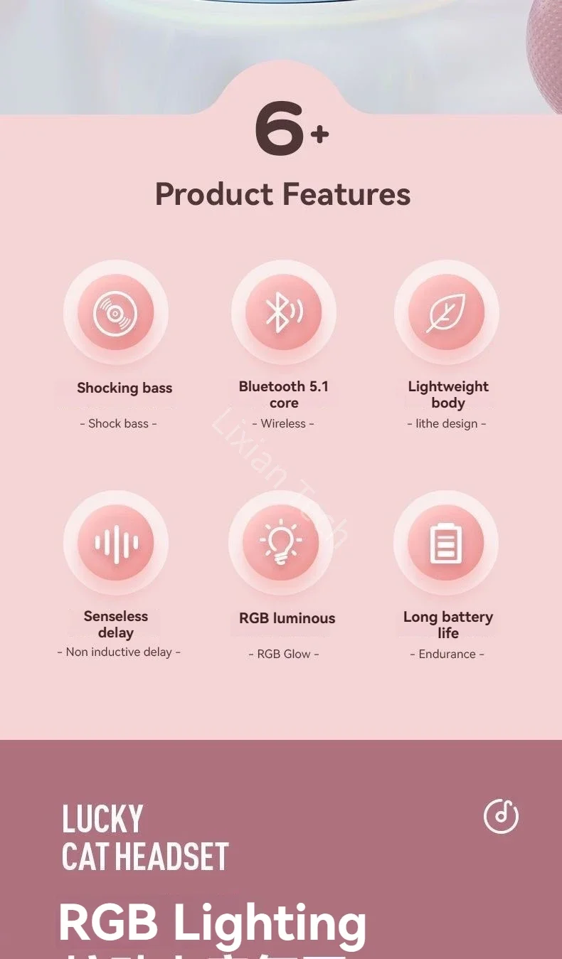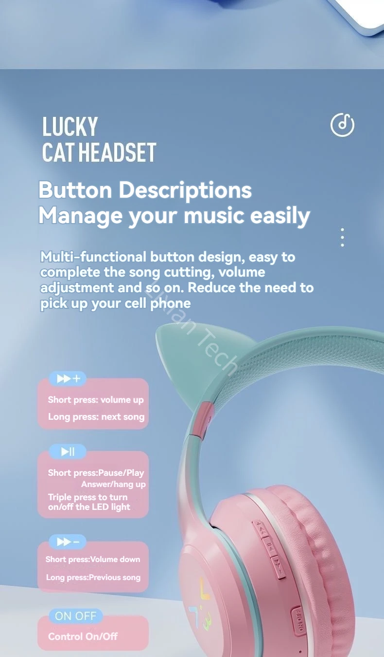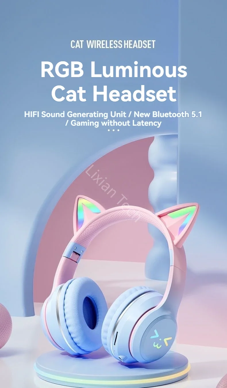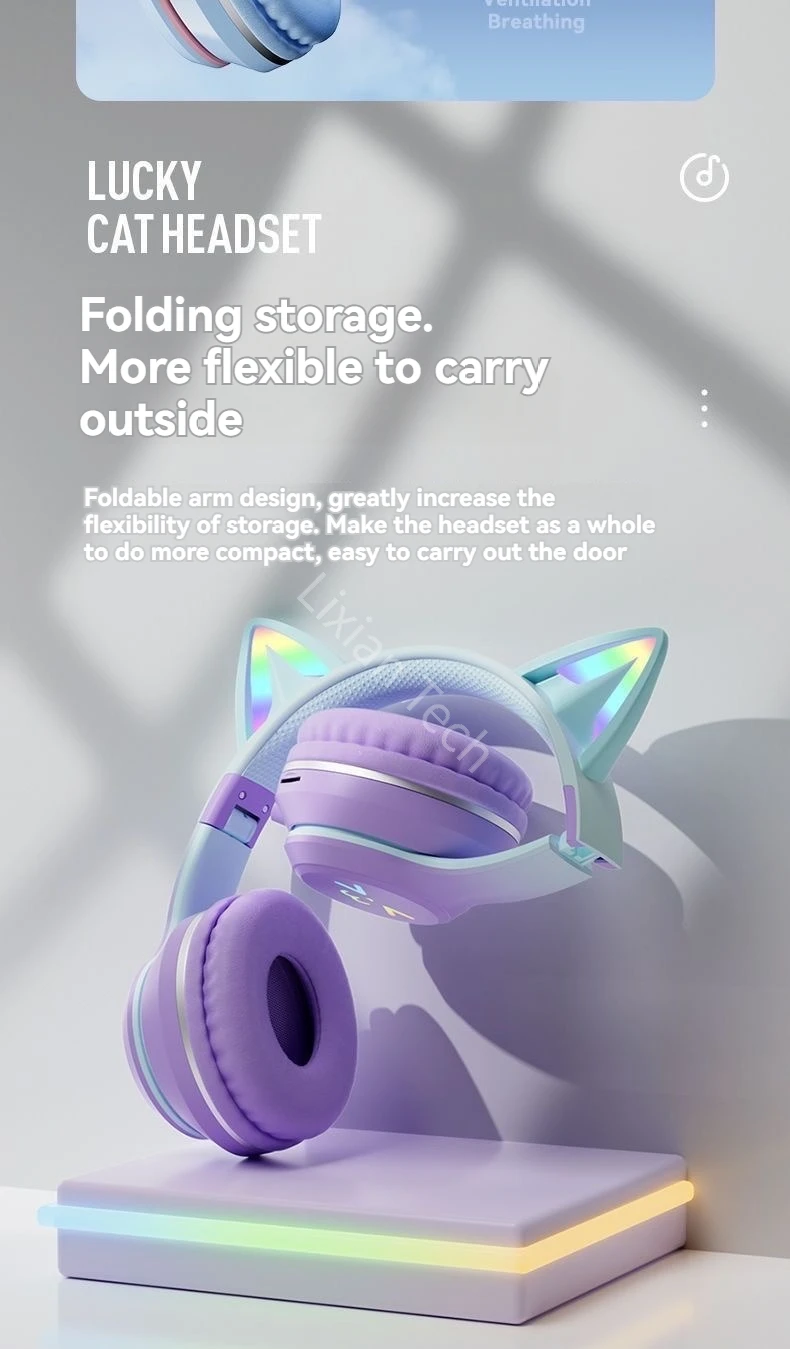 1. Cat Ear Bluetooth-Compatible Helmets: Cute cat ear shape, colorful luminous Bluetooth-compatible headset for kids and adult.